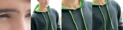 - Contrast raglan sleeves, hood and drawcord