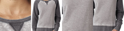 7 oz. 55% cotton, 45% polyester burnout fabric; Acid-washed with silicone finish; Whistle patch "v"; Contrast sleeves and waistband;