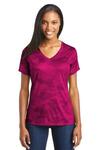 LST371-CS Ladies CamoHex Colorblock V Neck Tee