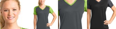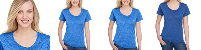 4.3 oz., two-toned polyester jersey; Moisture management for all season comfort; Stain release for easy care; Odor resistant; Neck seam cover-stitched for maximum durability; Tag free neck; Reinforced shoulder seam; Double needle cover-stitch hem;