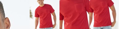 5.4 oz., 100% cotton; Heather Grey is 90% cotton, 10% polyester; Pocket double stitched for durability; Tubular construction; Made In USA;