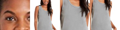 • Double-needle coverstitching on neck, armholes and waistband