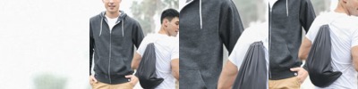 - Patented 2-in-1 hoodie converts into functional drawcord backpack in seconds