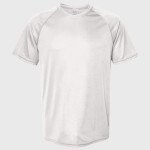 100% polyester heathered wicking knit * Wicks moisture * Tag-free label * Crew neck * Set-in sleeves