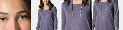 • Yarn-dyed striped back neck tape, drawcord and cuffs