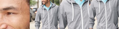 • Triple-needle coverstitching on hood, neck, armholes, pocket openings, cuffs and waistband